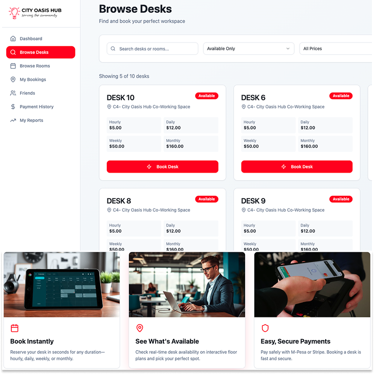Comprehensive management platform for co-working spaces. Handle bookings, memberships, billing, and space utilization with ease.