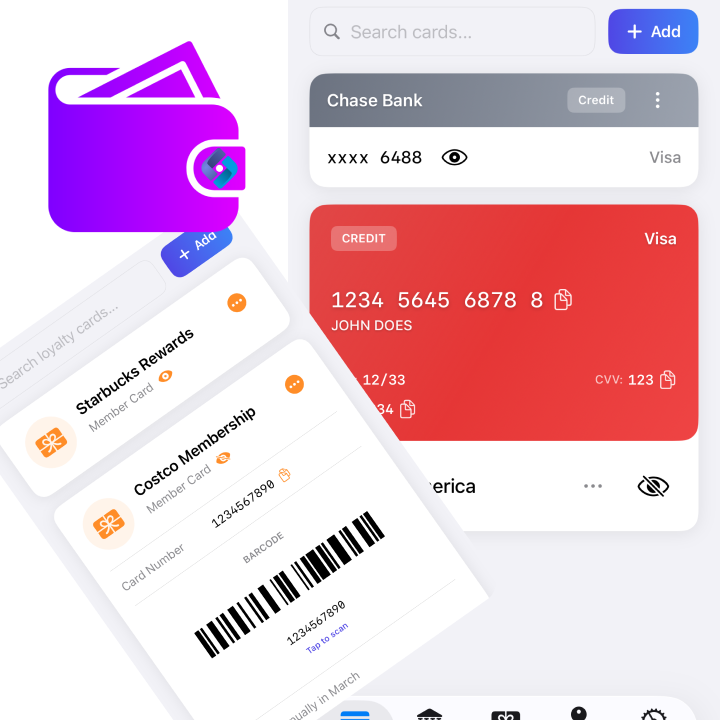 CybaWallet is a secure, offline-first iOS wallet designed to keep your sensitive data safe and organized. Built with privacy and security at its core, the app stores all your data locally in an encrypted database that never leaves your device.